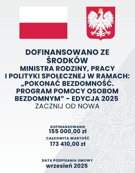 Od 01 września do 31 grudnia 2025 roku Fundacja NEFESZ, prowadząca Ośrodek Leczenia Uzależnień Dom Magnificat w Ligocie Polskiej, realizuje działania skierowane do osób w kryzysie bezdomności, w ramach edycji 2025 programu „Pokonać bezdomność”.